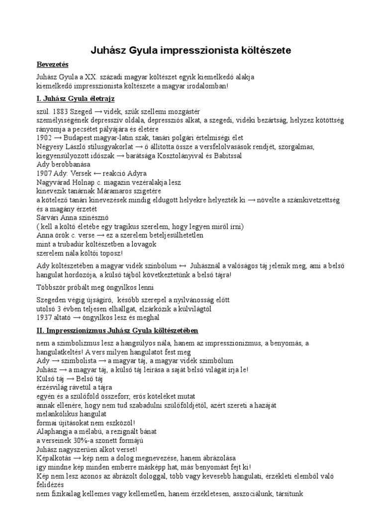Juhász Gyula Tiszai Csönd Elemzés